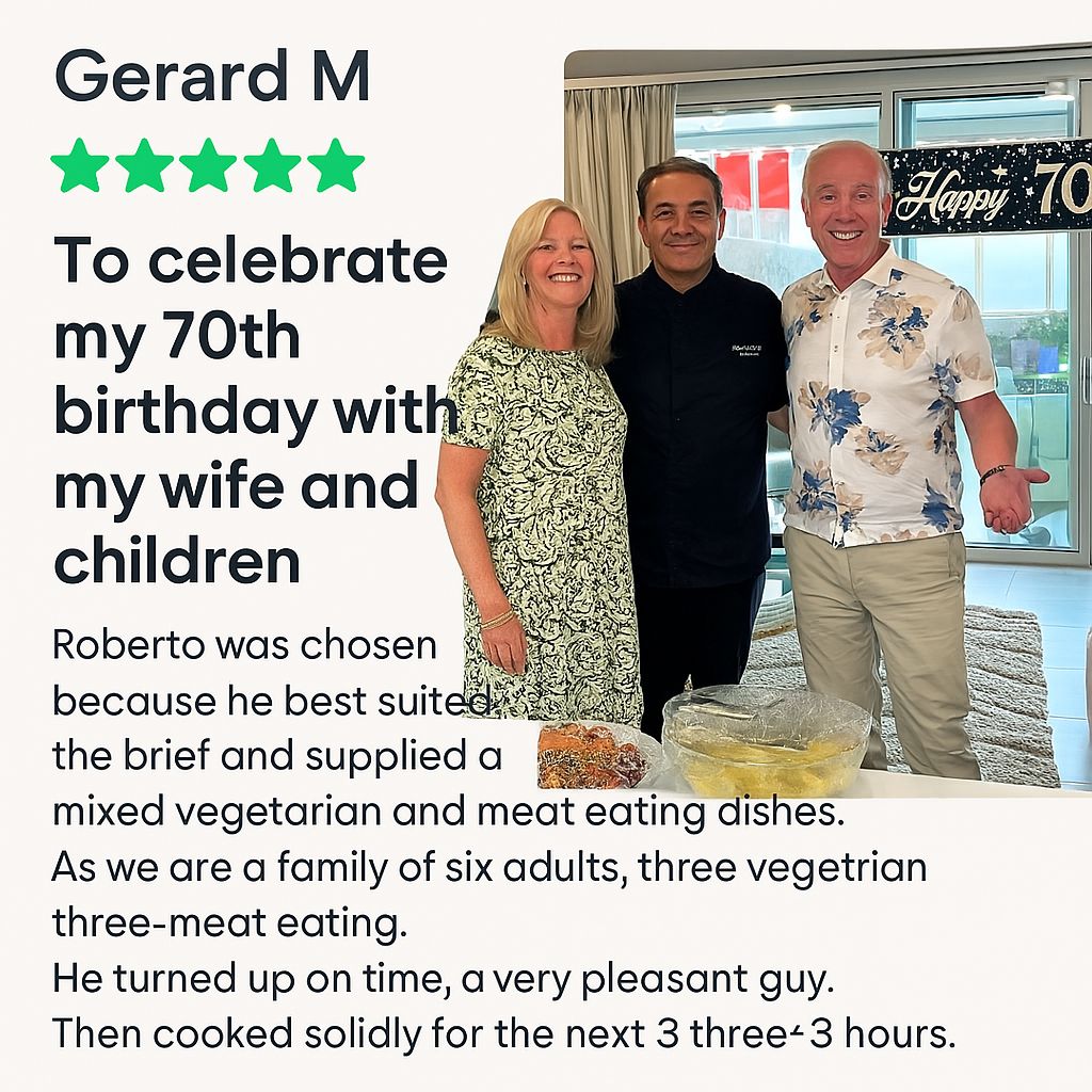Looking to enjoy a feast in the comfort of your villa without the formality of a sit-down dinner? My “Cook and Go” buffet-style service is the perfect solution. I prepare everything fresh in your kitchen and leave you with a beautifully presented buffet — ready for you and your guests to enjoy at your own pace.